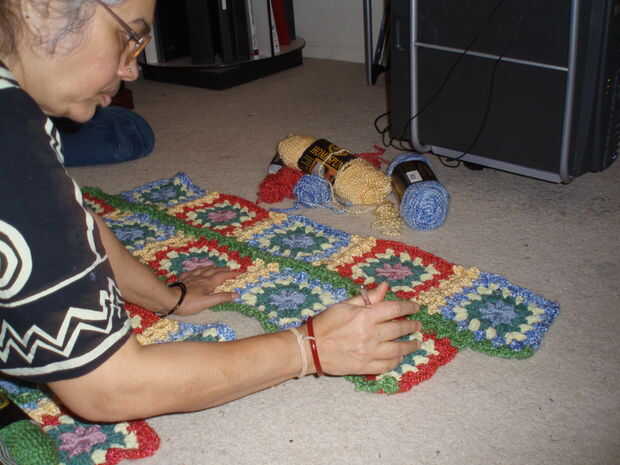 hice este afgano como regalo de graduación de Universidad de mi esposo. Tardé exactamente 5 meses para hacer este afgano de 7' x 6'. He creado el patrón utilizando el programa en mi computadora. He utilizado hilo de corazón rojo, aguja de crochet de