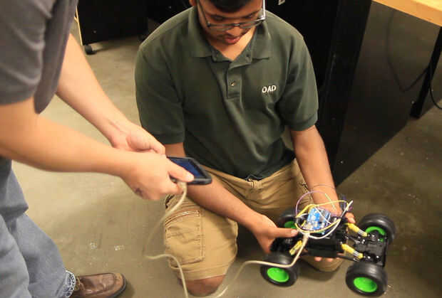 Recientemente compramos un rover de China que hemos controlado con una placa Arduino y MICILE dos tabletas. El proyecto de rover fue exitoso, así que decidimos intentarlo de nuevo, pero esta vez estamos convirtiendo un carro de control remoto para un rover, opción un poco más accesible y un poco menos cara que el original rover que compramos. No sólo es más barato, parece ser un poco más robusto, así el carro RC. La tableta MICILE nos permite muchas opciones a la hora de controlar a la rover, incluyendo un acelerómetro (para movimiento volante y delantero/al revés) así como la cámara integrada (para enviar imágenes detrás de donde se encuentra el rover). Por lo tanto, igual que con nuestro primer proyecto de rover, vamos a utilizar dos tabletas MICILE, uno en la rover, uno con la persona que controla al rover. La tableta MICILE unida a la rover utiliza la cámara integrada para captura de vídeo que se envía a la segunda tableta MICILE. La segunda tableta MICILE se utiliza para controlar al rover. Esto es sólo parte de nuestro proyecto.