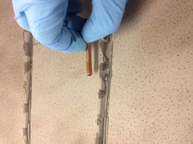 Una vez que tuvimos los cartabones que puso hacia fuera entonces utiliza JB weld, nos lo envolvió para arriba con cinta azul para secar. Este método de construcción significó que el interior estaba libre de los componentes electrónicos y soporte.