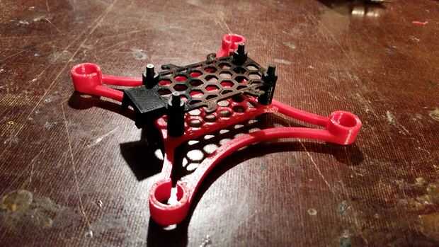 Jefe de Thingiverse y descargue el marco. Recomiendo usar la parte inferior de la V3. Es el más fuerte de todos. Elegir una tapa que se adapta a tu estilo vuelo. Hay opciones para cámara con para arriba-inclinación, inclinación hacia abajo y recto. También hay un top sin un soporte de cámara.