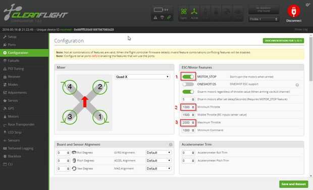 En este paso vamos a configurar algunos ajustes básicos para los Cleanflight.