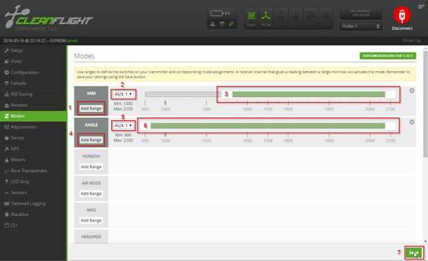 Ahora es el momento de armar el programa de instalación y modos de vuelo así que abran la pestaña de modos.