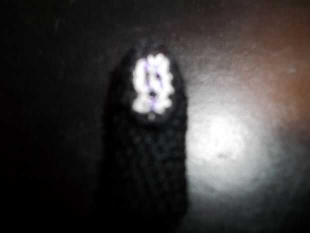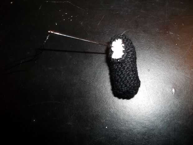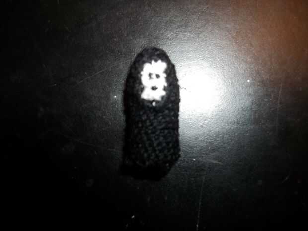 Fije la cara al cuerpo. Use un hilo y aguja de coser para unir los detalles de la cara. Luego usé un marcador para añadir las marcas de color púrpura.