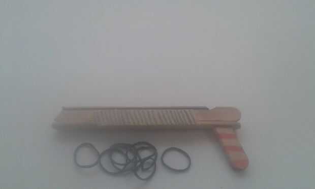 Este artículo de escritorio armas acomoda múltiples rondas de municiones, explosión lanza con punta de ballesta pernos y hondas madera coincide con más de 30 pies de distancia. En este proyecto estamos convirtiendo algunos artículos para el hogar com