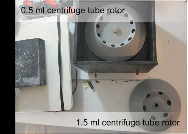 Cortar un trozo de acrílico grueso de 1/4 pulgadas para la tapa. Pegar película transparencia Mylar el acrílico para que alcohol etc de los tubos de la centrífuga no afectaría el acrílico.