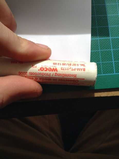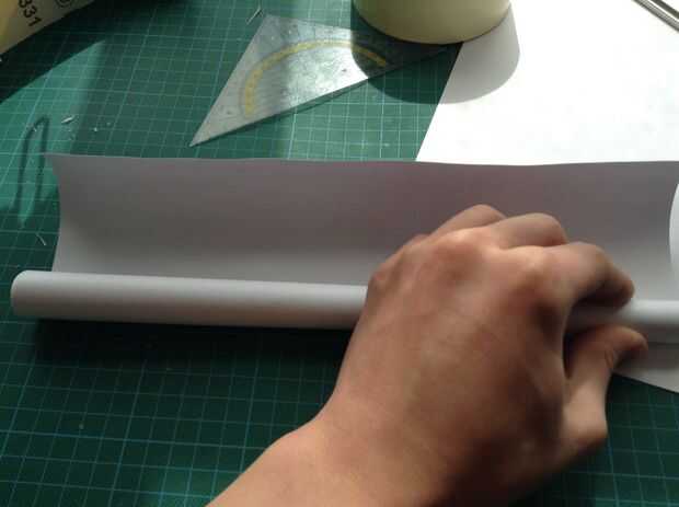 Rollo papel alrededor del motor con el lado de la boquilla del motor hacia el exterior del cohete. Si llegas a los últimos 5 cm del balanceo, aplique cinta doble cara al borde, así se adhieren a las otras partes del documento. También es posible hacer esto con colas como pritt.