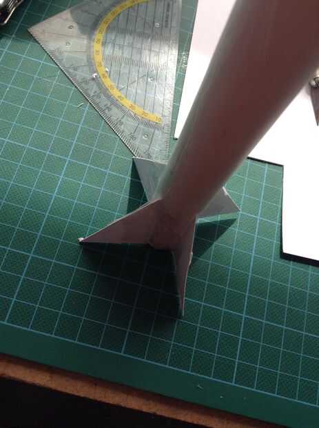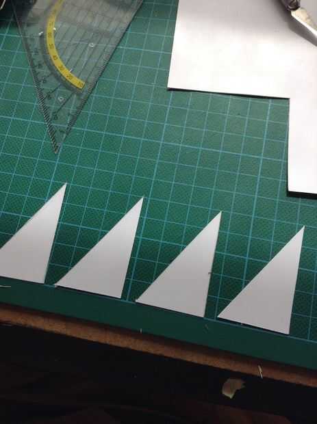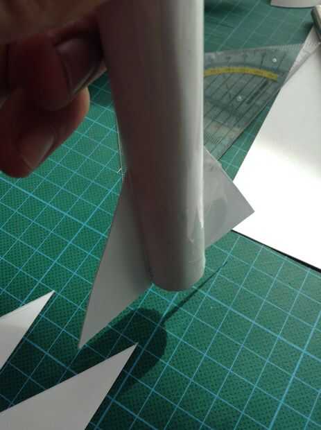 Las alas no son realmente lo que es necesarias, para que pueda jugar con ellos un poco. Utilicé un cuadrado de 5 por 3 cm, pero podría haber sido más grandes. Puede utilizar tres o cuatro alas. Cuatro es más fácil porque de esa manera, puede utilizar su instinto de ángulos rectos, pero también son posibles las tres alas.
