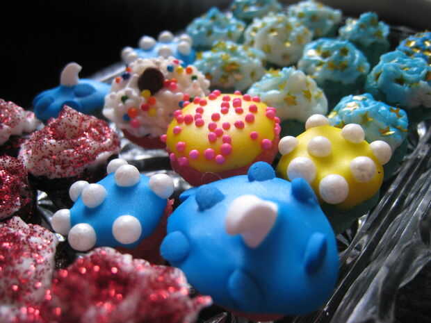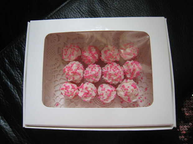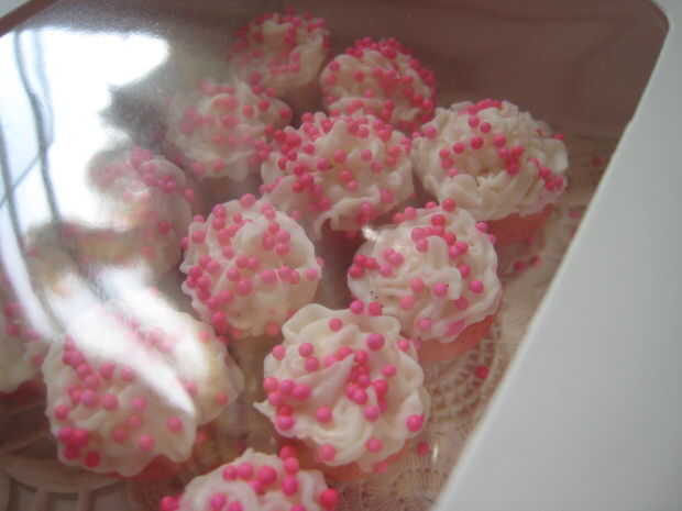Estas son mis Cupcakes Cupcakes Micro AKA dedal! Me encanta hacer estos, a pesar de toman un montón de tiempo y consideración para el detalle y hay * poco * espacio para error. :] (Les he hecho unas cuantas veces, para un cumpleaños, para la familia, para una graduación y mi marido está tomando una "docena" en el trabajo hoy. Hahah!