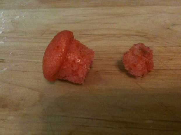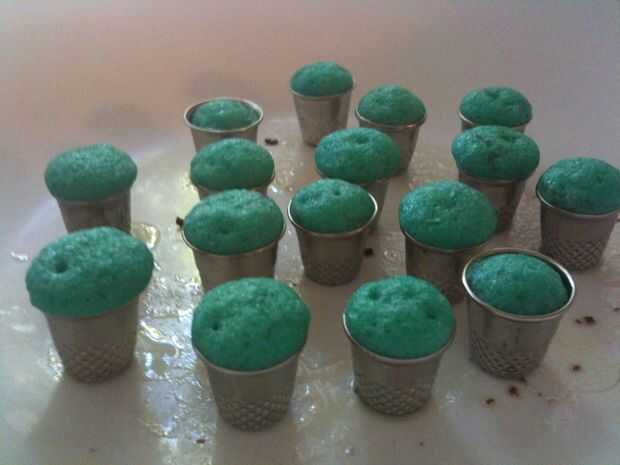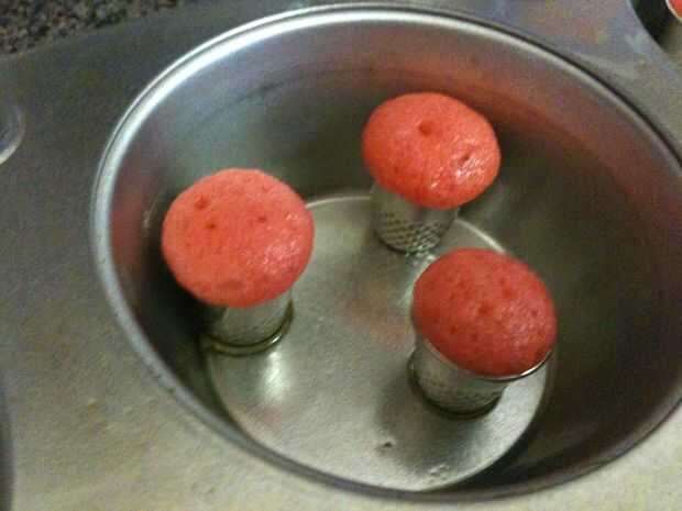Para quitar los cupcakes, espere hasta que hayan enfriado por completo y deslice un palillo por la parte del dedal para desalojar el cupcake de 1, 2 o 4 lados. Depende de cuán fácilmente se soltará. Cuidado cuando la saque. Usted quiere asegurarse de no rasgar la parte superior y que obtienes la base larga de la Magdalena del dedal. Usted puede cortar los fondos más adelante, para hacerlas más proporcionadas.