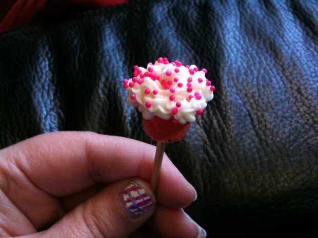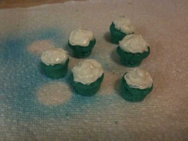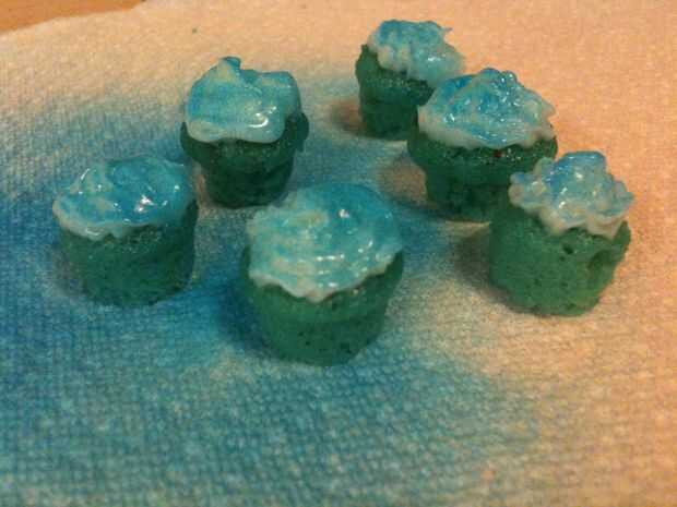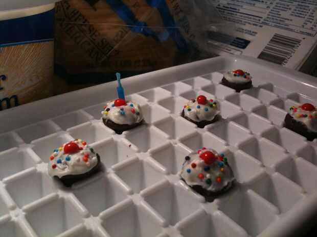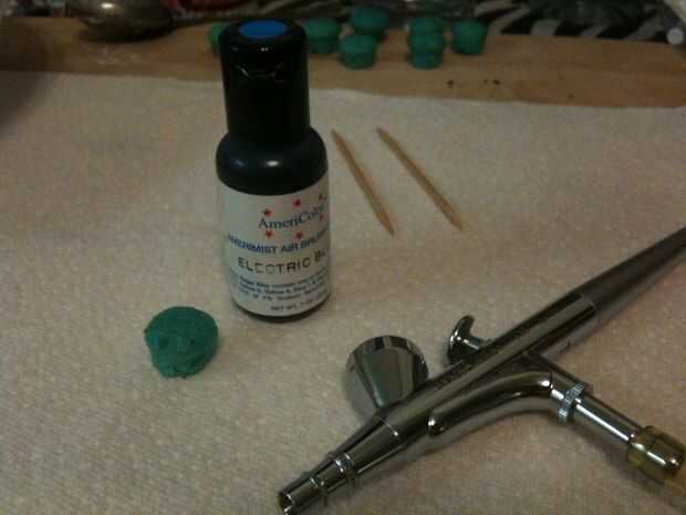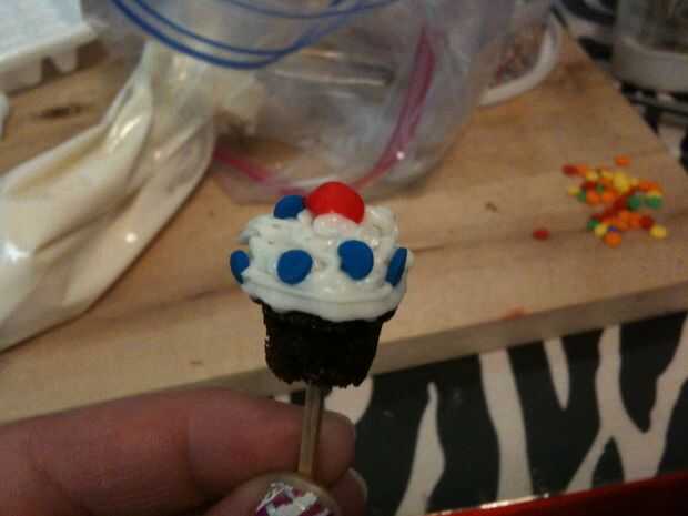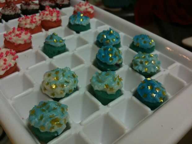 Asegúrese de que se adhieren a pequeñas chispitas para que todo se ve proporcionado correctamente. ¿Para cerezas, utilicé sólo escritores de CakeMate cookie? El endurecimiento poco glaseado tubos de gel. Había aerografiado los dulces pequeños de estrella azul. (Mi mamá solía aerógrafo tortas cuando era un niño - hace 20 años - así recordé a pedirle prestado. Y me encanta!!) * Nota * Si usted quiere conseguir su propio aerógrafo, vi uno en Michael, si ahorras un cupón fuerte, usted puede conseguir a buen precio.