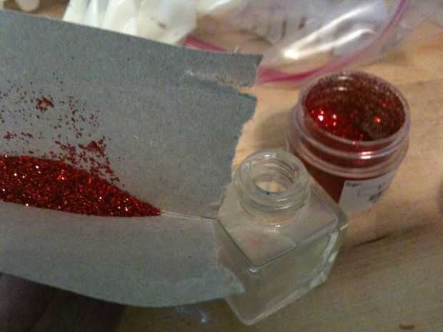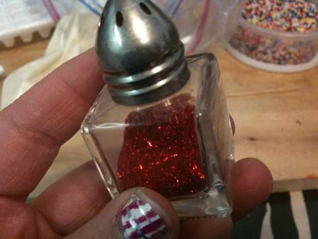 Por cierto - las estrellas de oro mini sprinkle son mis cosas favoritas siempre!!!! El brillo rojo es de mi madre, puto $8 por un recipiente pequeño pequeño! Las chispitas de múltiples pequeñas bolas fueron desde el almacén del dólar y un montón de la mezcla de pastel, también.