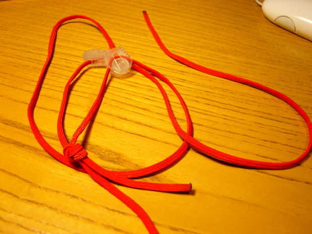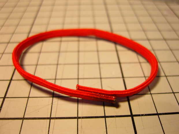 Para hacer la banda he usado dos viejo agujetas elásticas, corte hasta el tamaño adecuado y utiliza algún pegamento para sujetar los extremos en su lugar, entonces usé un hilo rojo para que sea más fuerte