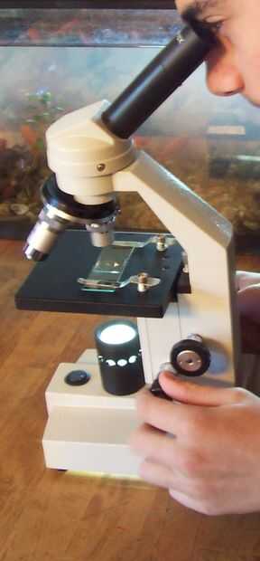 Una vez que has encontrado algo interesante, puedes mirar con los lentes más. Utilice el control fino para poner en foco. Tenga cuidado de no chocar el portaobjetos de cristal o la etapa de visualización cuando se cambia a las lentes más tiempo.