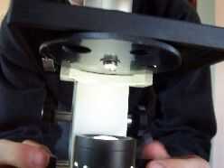 Comience siempre con el más bajo lente de aumento. Gire el dial de macrométrica, que mueve la etapa de visión hacia arriba y hacia abajo, de modo que es hacia arriba. Usted quiere asegurarse de que la lente nunca flequillo en la etapa de visualización, así siempre lo esta mirando desde el lado.