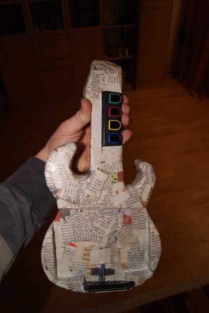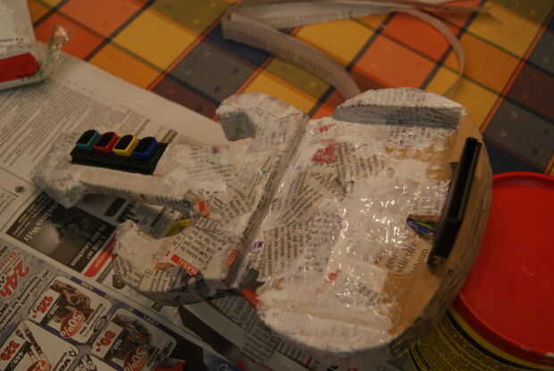 periódicohecha jirones. Hacerlo con mucho cuidado para evitar dañar los componentes electrónicos y usar piezas pequeñas y estrechas sobre todo en los cuernos. Recuerde que la ruta de los cables del adaptador, aproximadamente una pulgada de largo (