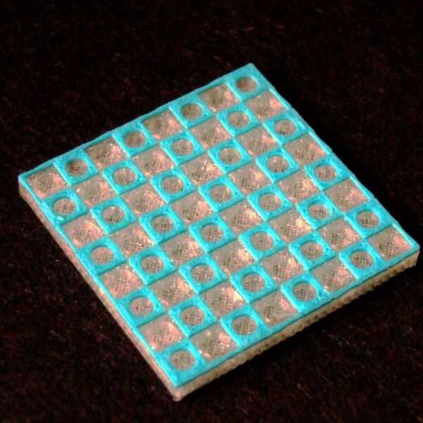 Es fácil imprimir un color sobre un Replicator 2 pausar impresión media y cambiar a otro color. En el caso de este tablero de ajedrez, imprimí unos 17 minutos y entonces tan pronto como empezó a imprimir las plazas elevadas presiona la flecha izquierda del menú y haga clic en cambio de filamento. Esto elimina la cabeza del estirador de la impresión y permite cambiar color filiment.