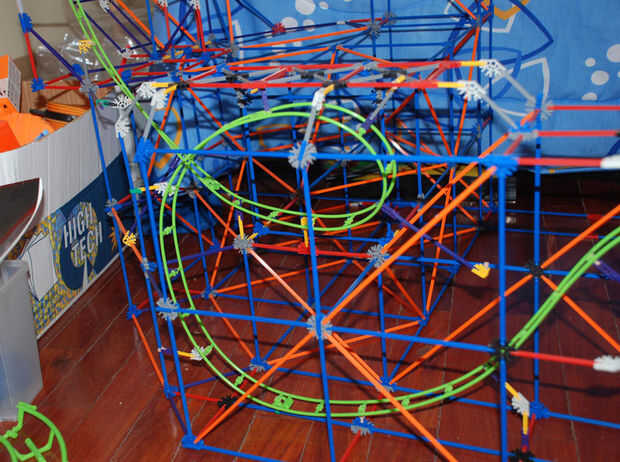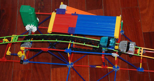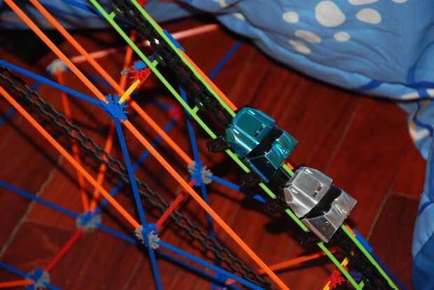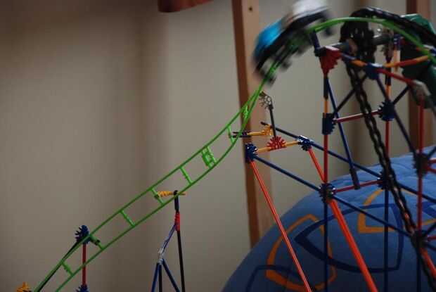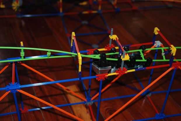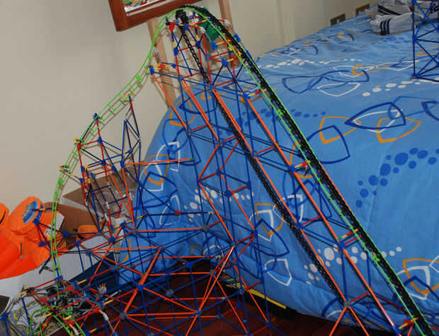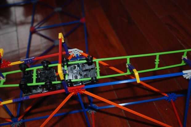 this is my knex roller coaster; Torcedura del diablo. he terminado el 7 de agosto 2009.it tomó 3 días para construir y al menos 1 hora a la película. Iba a incluir un segundo elevador de cadena, pero no funcionó hacia fuera. De todos modos, tiene una