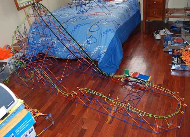 soy un niño de 13 años en Nueva Zelanda y me encontré con un video de alguien que hizo su propio montaña rusa por lo que decidí hacer mi propio.la pista es de 30 cm y 45 cm de ancho con 2 o 3 15 cm tablas al ladosu 65 cm de altura al principio y ya s