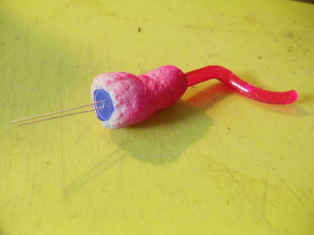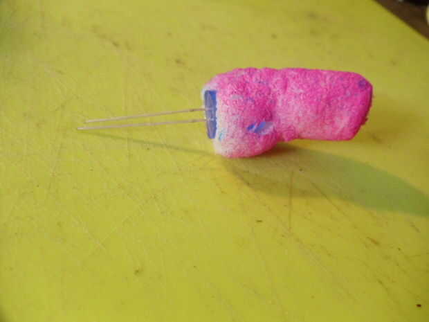 5-1: Inserte el LED en un extremo del maní pintado (se trata de la parte inferior)
