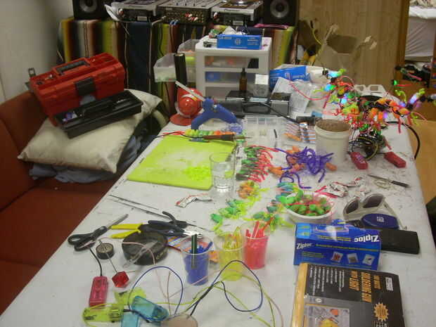 Mashup Feria Maker: GRL LED Throwie + Cybords = Talkie fotorresistenciasDurante la Feria de 2006 fabricante el Graffiti Research Lab fue demos su LED Throwies y Pat & Ward Cunningham manifestaban Cybords. Al hablar alguien hizo un comentario acerca d