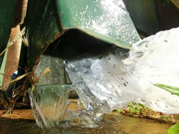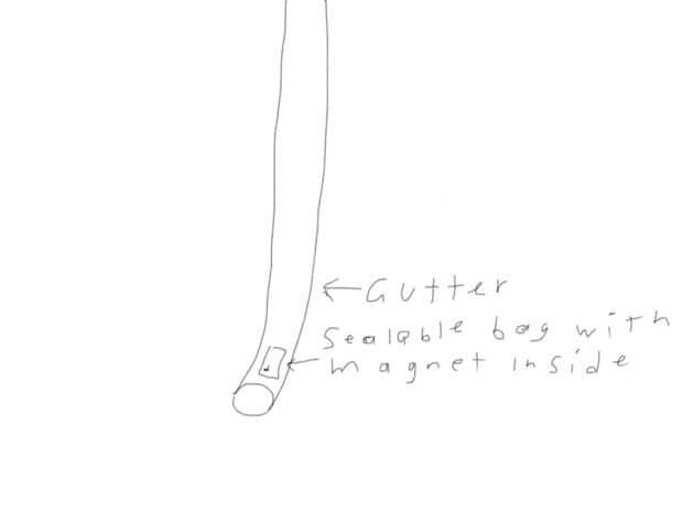 Segundo: Coloque la bolsa capaz de sello con el imán dentro de en el final de un canal y esperar a la lluvia.