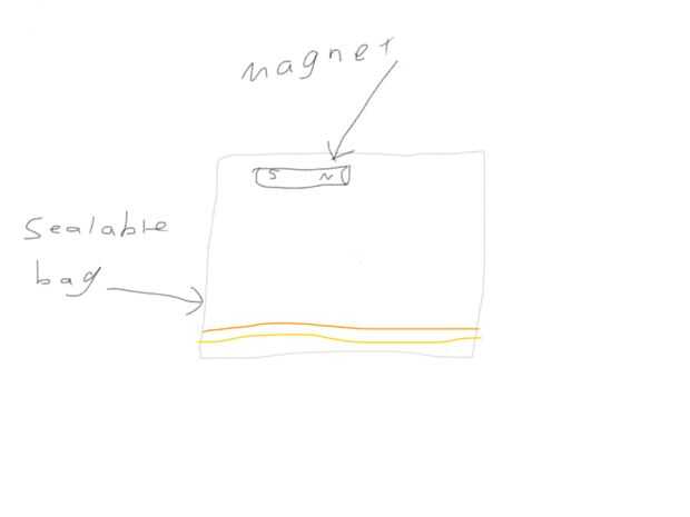 Primera: Conseguir un imán pero más imanes no funcionan a menos que utilice un imán de neodimio que es probablemente mentira alrededor de su casa en algún lugar y colocarlo dentro de una bolsa capaz de sello.