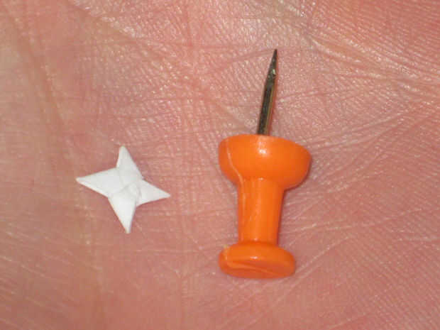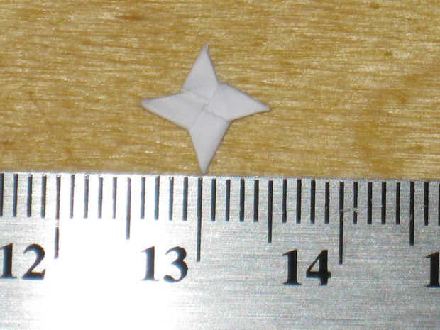 Cuando haya completado la estrella es un pelo más 3/8"(10mm) de punta a punta.