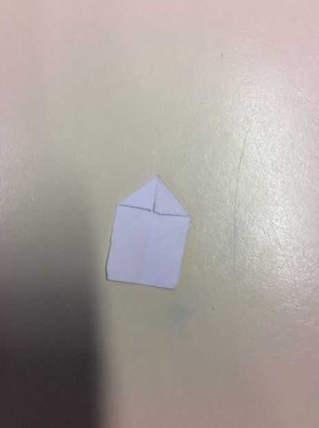 Tomar la esquina superior derecha y superior izquierda. Hacer un pliegue para que lleguen a la parte superior media del papel para crear una forma de flecha como se muestra en la imagen.