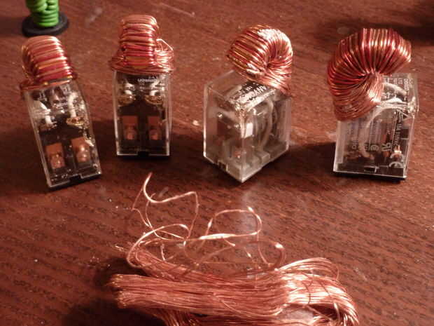 La parte superior del relé fue cortada a 45 grados, proporcionando un punto de adición para el inductor con resina. Después de conectar, la conexión fue mejorada envolviendo el alambre de cobre adicional alrededor de la articulación.