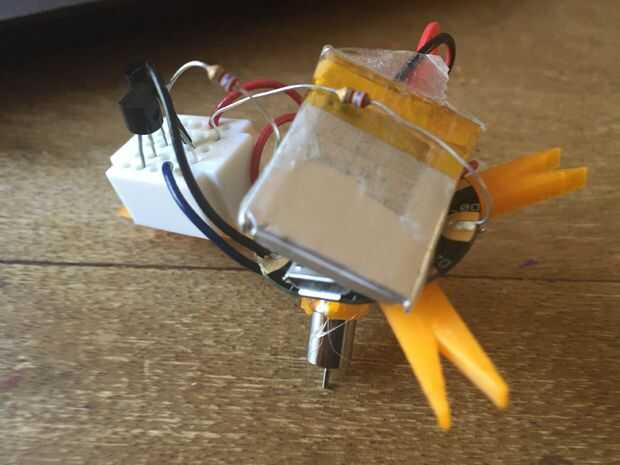 Construir un robot de 1/20 pulgada cúbica con una pinza que puede recoger y mover pequeños objetos. Es controlado por un microcontrolador Picaxe. En este momento, creo que esto puede ser más pequeño robot con ruedas del mundo con una pinza. Cambiará