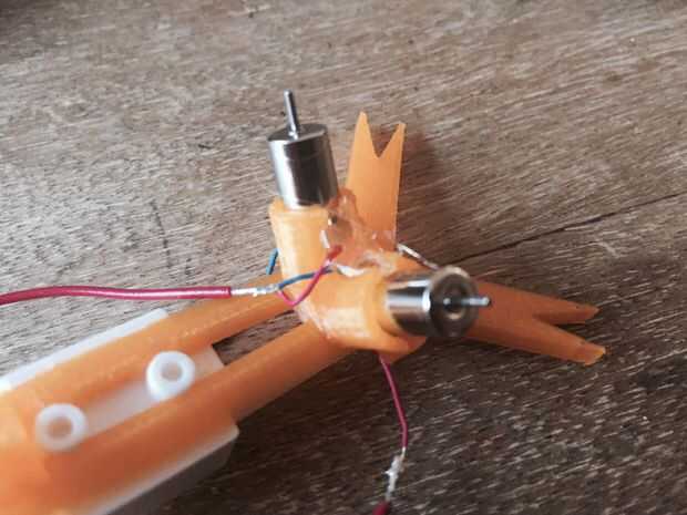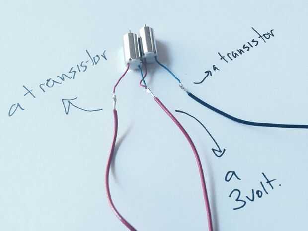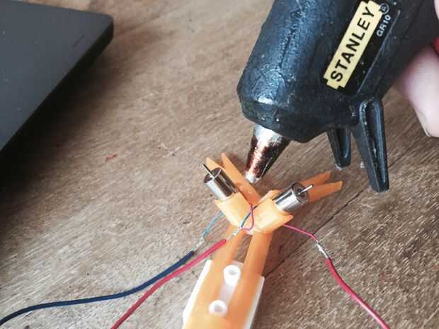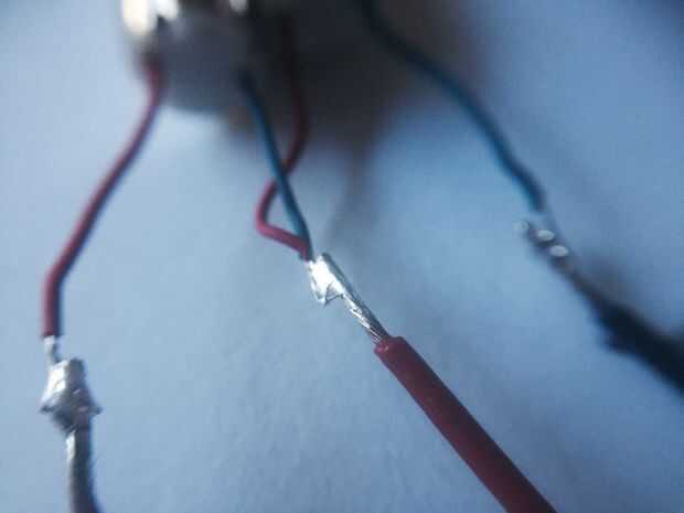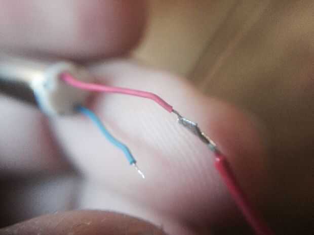 A los dos motores hay soldarles unos cables. Como se ve en la foto, motor de las Naciones Unidas de de soldar un cable rojo con uno azul del otro motor. Un los cables quedan sueltos, soldarles una extensión, pues esos cables son muy pequeños.