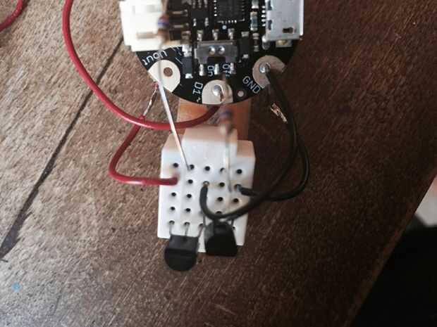 Luego colocamos los transistores en el micro-protoboard, de manera queden uno frente al otro (cara plana contra cara plana), compartiendo una fila del tablero, están el colector de cada del transistor. La base de cada transistor se conecta a cada una de las resistencias. El emisor del transistor, entonces se conecta un motor de el cable libre de cada.