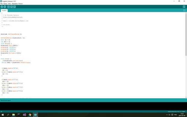 Tarea del programa de recepción de datos desde el módulo bluetooth y encender y apagar motores. Utilizar software serie porque ATtiny no pines UART.