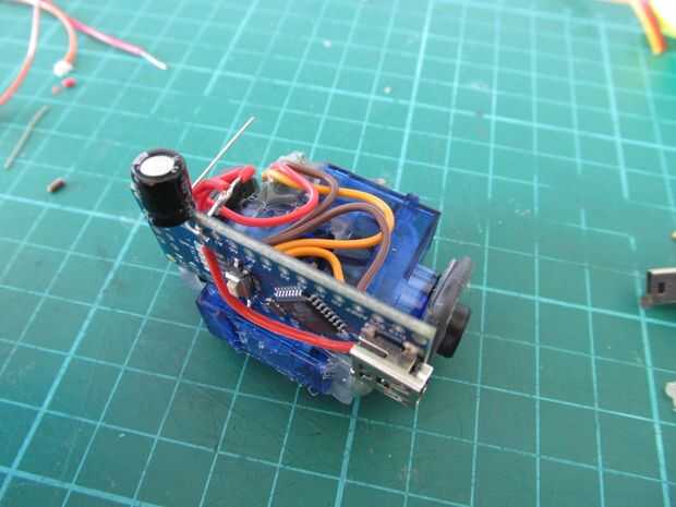 El Arduino Nano encaja perfectamente en la parte posterior. Es hotglued en lugar. Luego se sueldan los cables de Servo sobre él. Dos otras modificaciones tienen que hacerse a ella: