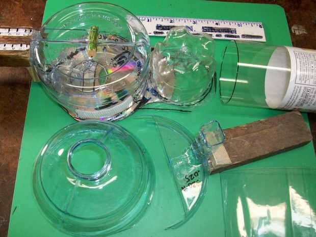 Caso de resonador o caja.--cualquier disponible puede o botellas de plástico o envases de alimentos. Utilizamos latas de alimento de animal doméstico de aluminio 3-1/4 x 2 alta y tamaños pequeños los 2 1/2 diámetro se muestra a continuación. También, encontramos una botella de bebida que se puede comprar por aproximadamente $1.50 en lugares como Walmart.It fue un dia un litro 'h2o sobre la marcha' 4 pulgadas, a una altura de 2 pulgadas. Véase la figura. Alimentos para perros las latas tienen un filo donde cubiertas fueron estafadas. Esto debe ser aplanado con una pinza pequeña.