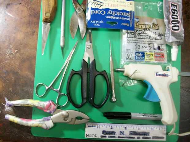 Pistola de pegamento. Palos de pequeño tamaño que puede derretir el pegamento HT. Pegamento E6000 también es bueno para la adherencia del plástico deslizante.