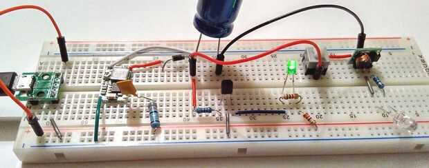 Cuando el interruptor está encendido, el supercapacitor alimenta un pequeño convertidor que eleva el voltaje a 3.3V para alimentar un LED mediante una resistencia de ohm 11,4.