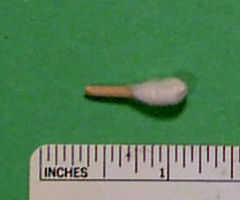 Corte un pedazo pequeño de algodón y pegar en el palillo de dientes. Abrigo de algodón alrededor del palillo de dientes y deja que el pegamento seque.