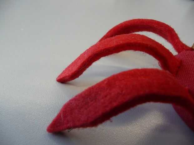 6. corte seis pedazos de metal alambre y empujar a través del fieltro. Doblar las piernas.