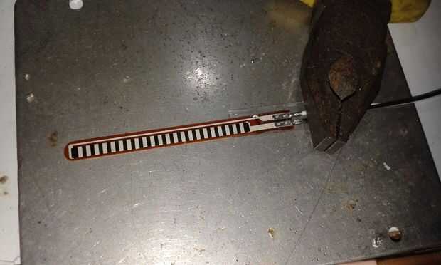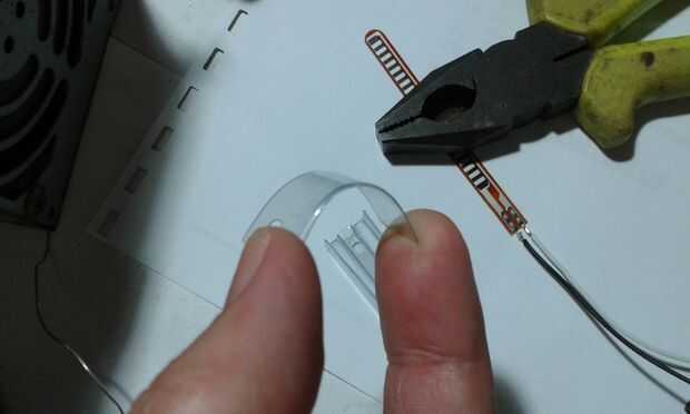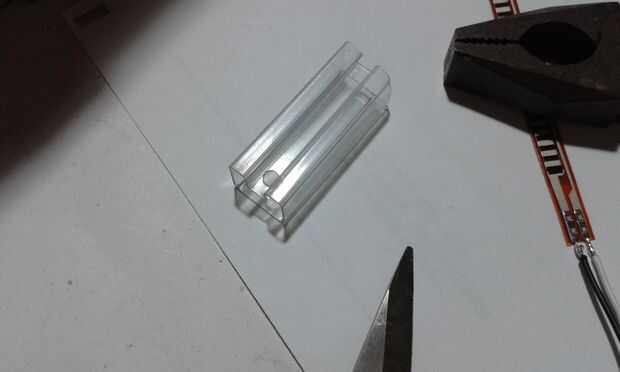 -El Flex Sensor 2.2" es frágil en la parte terminal. Así que para fortalecerlo, yo corte alguna pieza plástica de un plástico tubo envío IC.