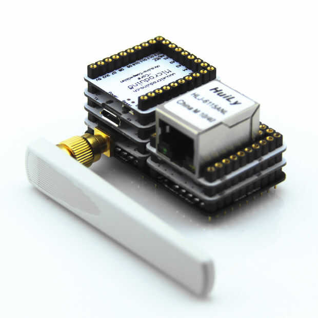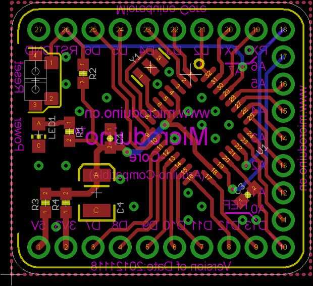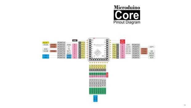 La idea de Microduino es la construcción de circuito de Arduino Uno en dos tableros separados: un sistema mínimo de arduino (nombrado como Microduino-base) y un tablero de ttl2usb (nombrado como Microduino-FT232R). el pinout de dos tableros está bien definido como una forma de U 27 pinout, 27 señales cuidadosamente dispuestos y utilizados, por lo que la Junta dos se puede apilar juntos, funcionando como una placa Arduino Uno.