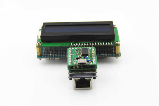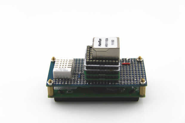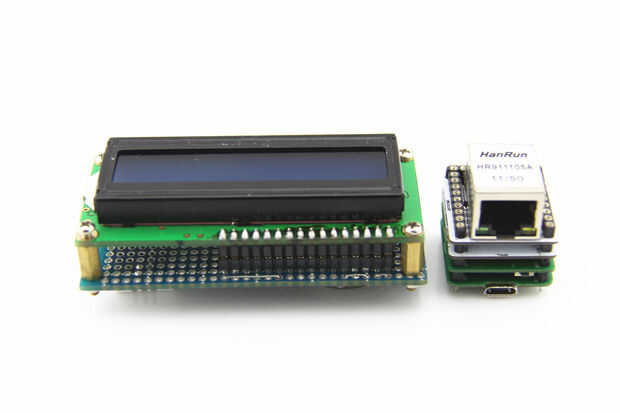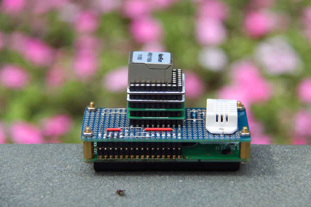 Apilan los tableros juntos y sensor de temperatura conectado en una placa de orificio estándar – BTW, Microduino es compatible con una placa de orificio estándar, pero no es Arduino. Luego, programa de Arduino fue desarrollado para que el dispositivo funcione. Con este pequeño dispositivo, datos de temperatura pueden enviarse automáticamente a internet; por lo que puede incluso en tiempo real monitorear la temperatura de la habitación del servidor en casa. He construido 8 sets de este dispositivo, y han estado trabajando bien hasta hoy.
