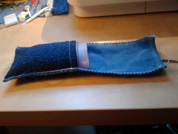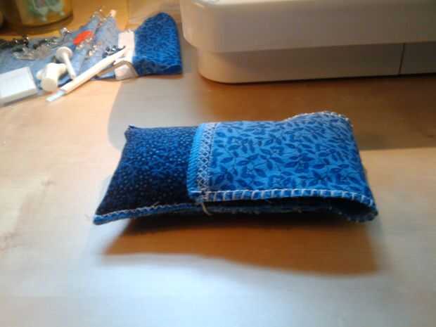Entonces consiguió algo de dinero del gobierno y comprar mi propia máquina de coser! (Economía estimulada!) Tomé un retazo azul y un paño de microfibra de felpa azul y azotado hasta una nueva funda para mi teléfono.