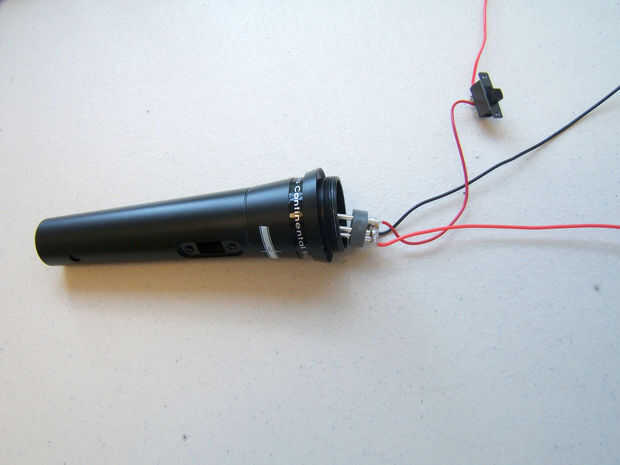 Ayuda a empujar la clavija XLR como usted puede en el uso de los dedos y luego páselo a través con un par de alicates de punta.