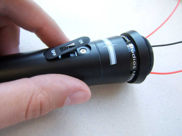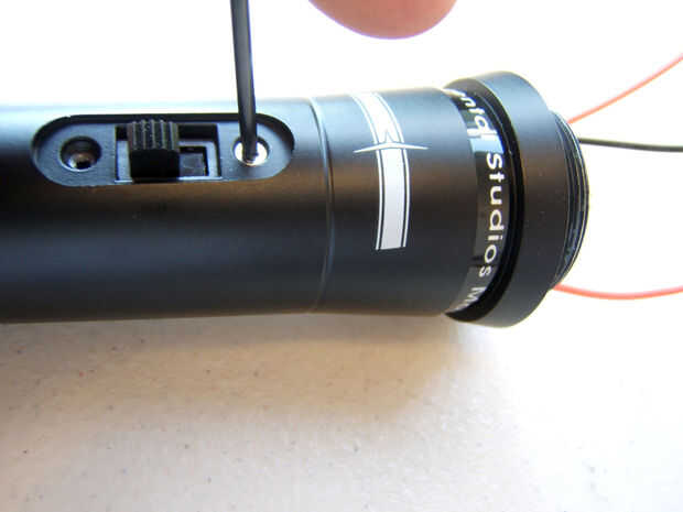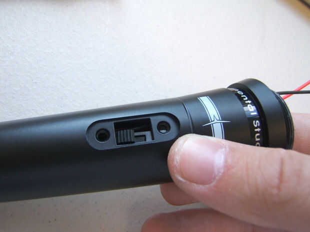 A continuación, sujete el interruptor con el dedo y así en el tornillo. Una vez que se atornilla en su lugar, pegar la etiqueta de "on/off" en.