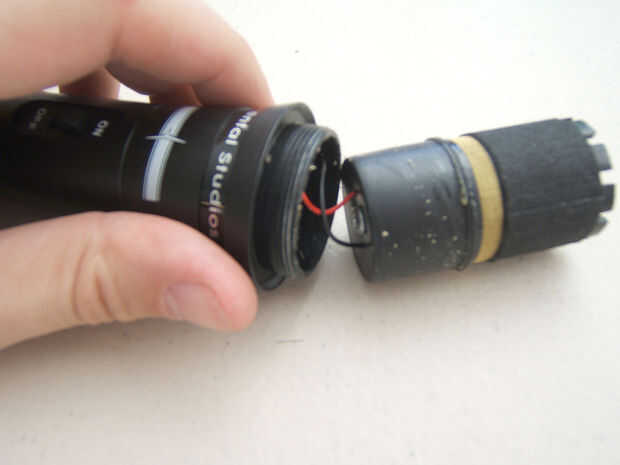 Torcer aparte suavemente para aflojar el micrófono de la caja. Eso significa que necesita tire y gire para separar las dos simultáneamente. El micro se pega generalmente en, pero nunca lo suficientemente bien que no puede ser derrotado por una fuerza suave.