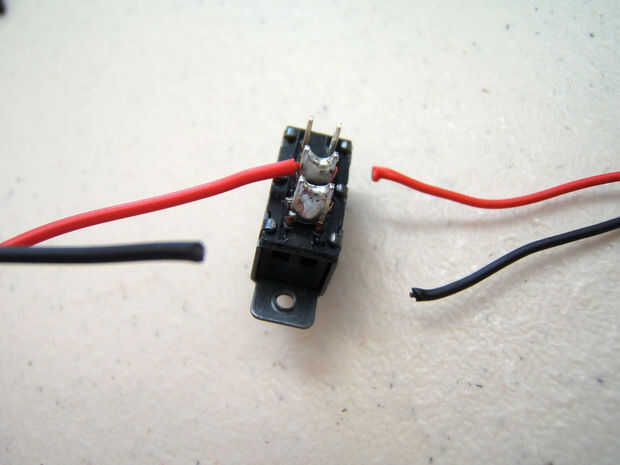 Preparando el interruptor es fácil. Sólo el cable rojo de la clavija XLR debe permanecer conectado al interruptor. Corte todos los cables extras con su cortador de alambre.