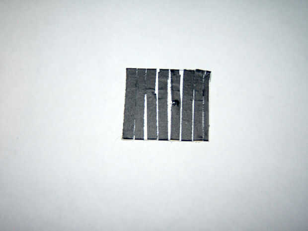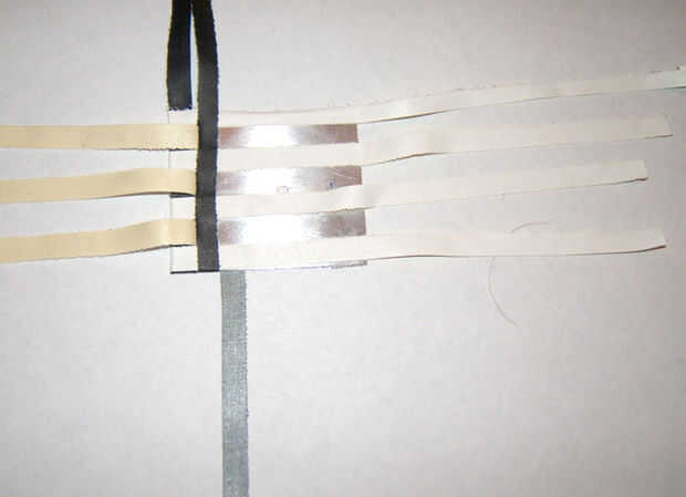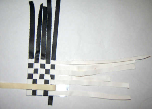 Para solucionar todos estos problemas a la vez tejió un patrón de tablero de checker de tiras delgadas de cinta blanco y negro iluminadores.