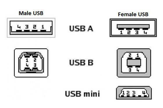 Como todos los micrófonos USB en el mercado, tu homebrew USB mic necesita un cable hembra de puerto USB. El tipo de puerto USB que encontrará en el Arduino Uno. ¿Tienes problemas en la conversión de puerto USB? Por favor consulte el USB pin-mapa de arriba.