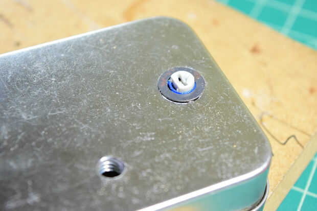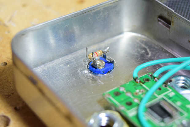 Perfore un agujero luego pegamento la resistencia condensador de ajuste en su lugar.